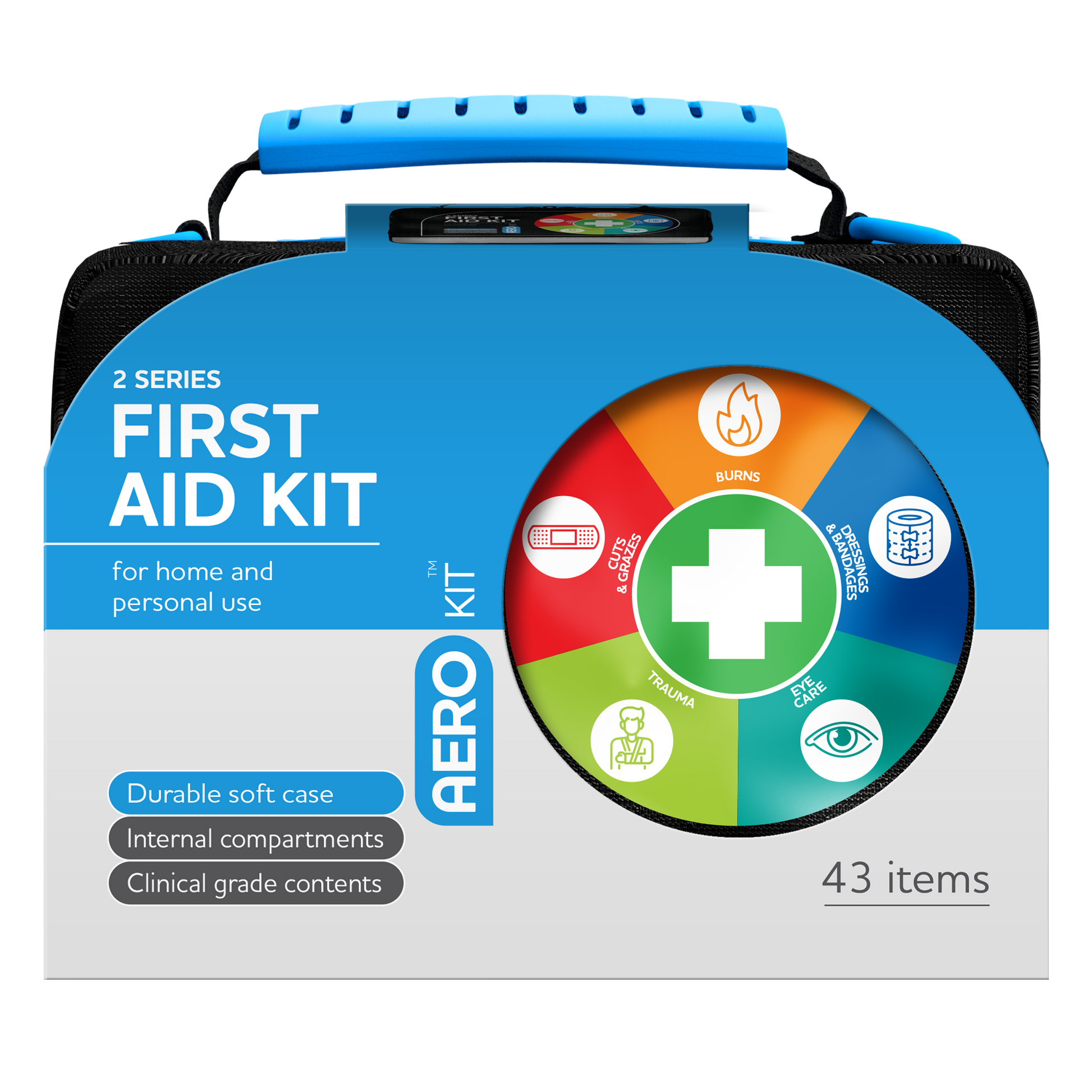Each AeroKit is fully stocked with essential dressings, bandages, and specialised items to treat a variety of injuries, including cuts, grazes, trauma, eye injuries, and burns. Additionally, individual product refills are available, ensuring your kit is always ready for the next emergency.